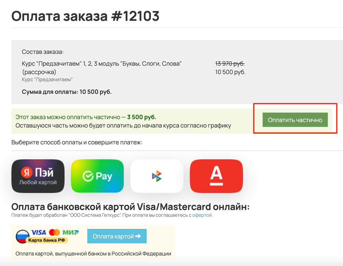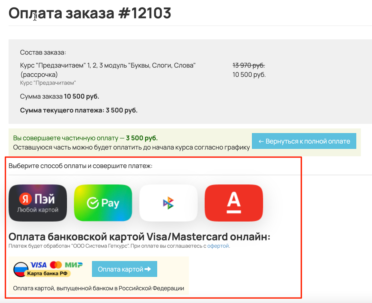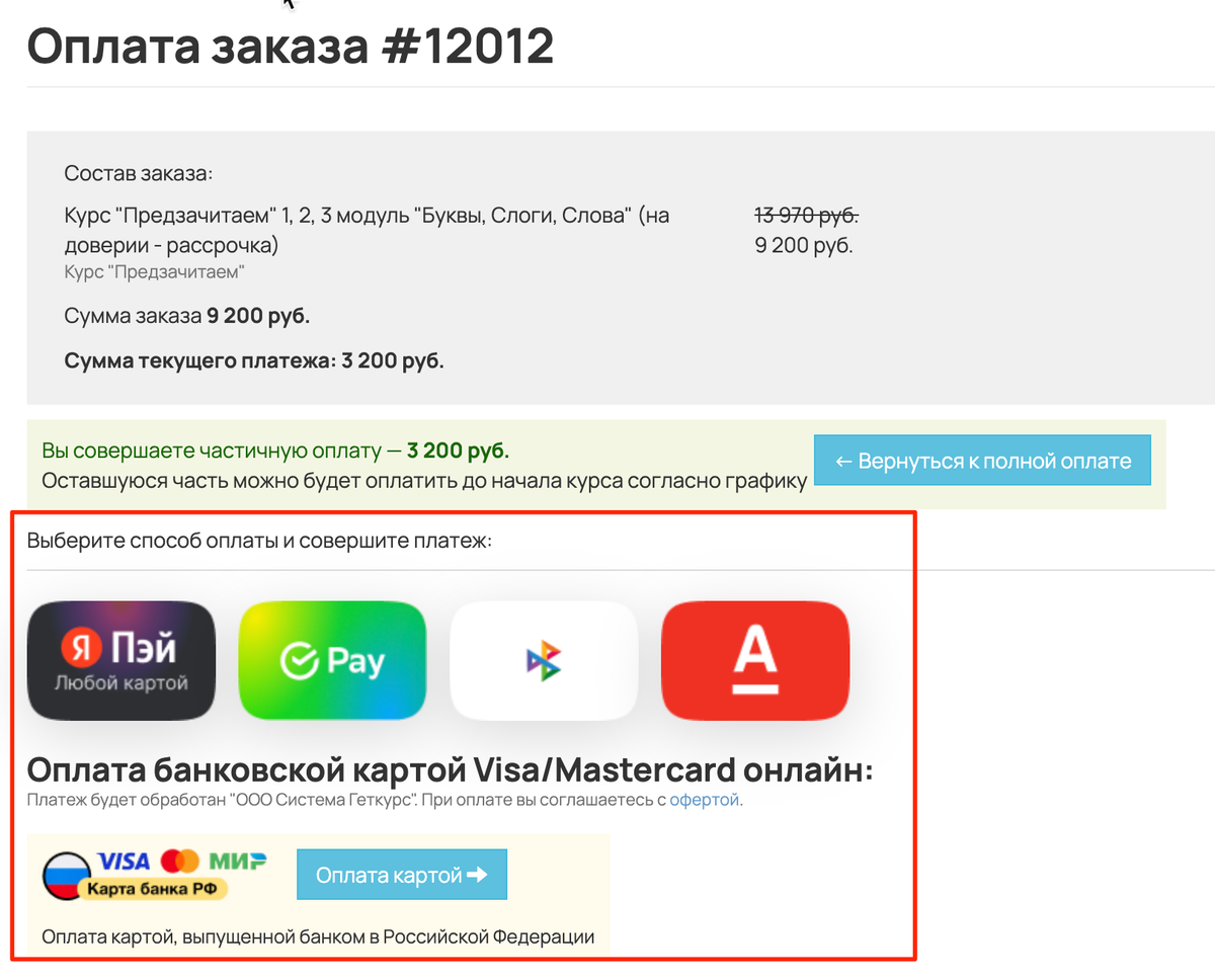 Напоминание об оплате придет за пять дней до даты внесения. Полностью оплатить курс можно в любой момент (для этого напишите в техподдержку).