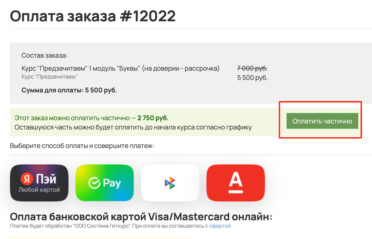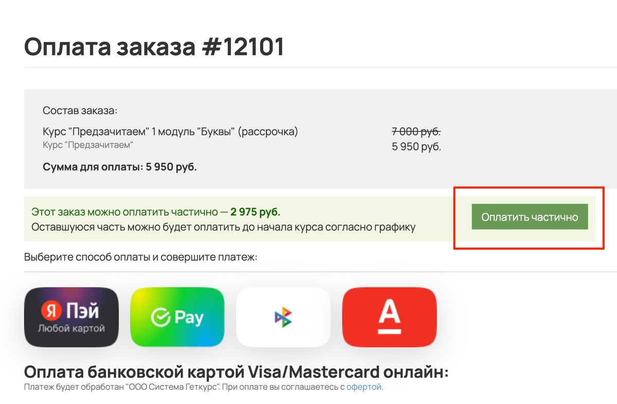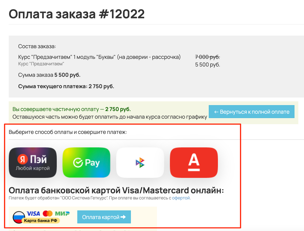 Напоминание об оплате придет за 5 дней до даты внесения. Полностью оплатить курс можно в любой момент (для этого напишите в техподдержку).